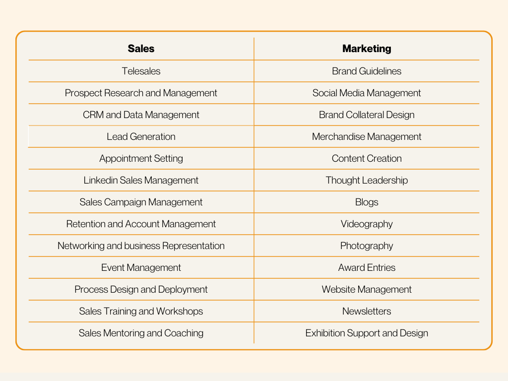 Telesales • Lead Generation • CRM & Data Management • LinkedIn Outreach • Appointment Setting • Account Management • Sales Campaigns • Sales Process Design